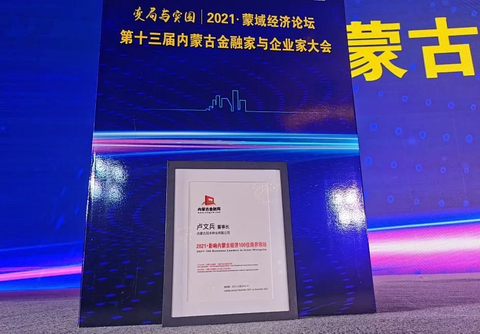 12月12日,2021蒙域經(jīng)濟(jì)論壇暨第十三屆內(nèi)蒙古金融家與企業(yè)家大會(huì)在呼和浩特隆重舉行。陰山優(yōu)麥?zhǔn)苎麉⒓硬⒂亚橘澲?,陰山?yōu)麥董事長(zhǎng)盧文兵先生,榮獲“2021影響內(nèi)蒙古經(jīng)濟(jì)100位商界人物榮譽(yù)稱號(hào)”。